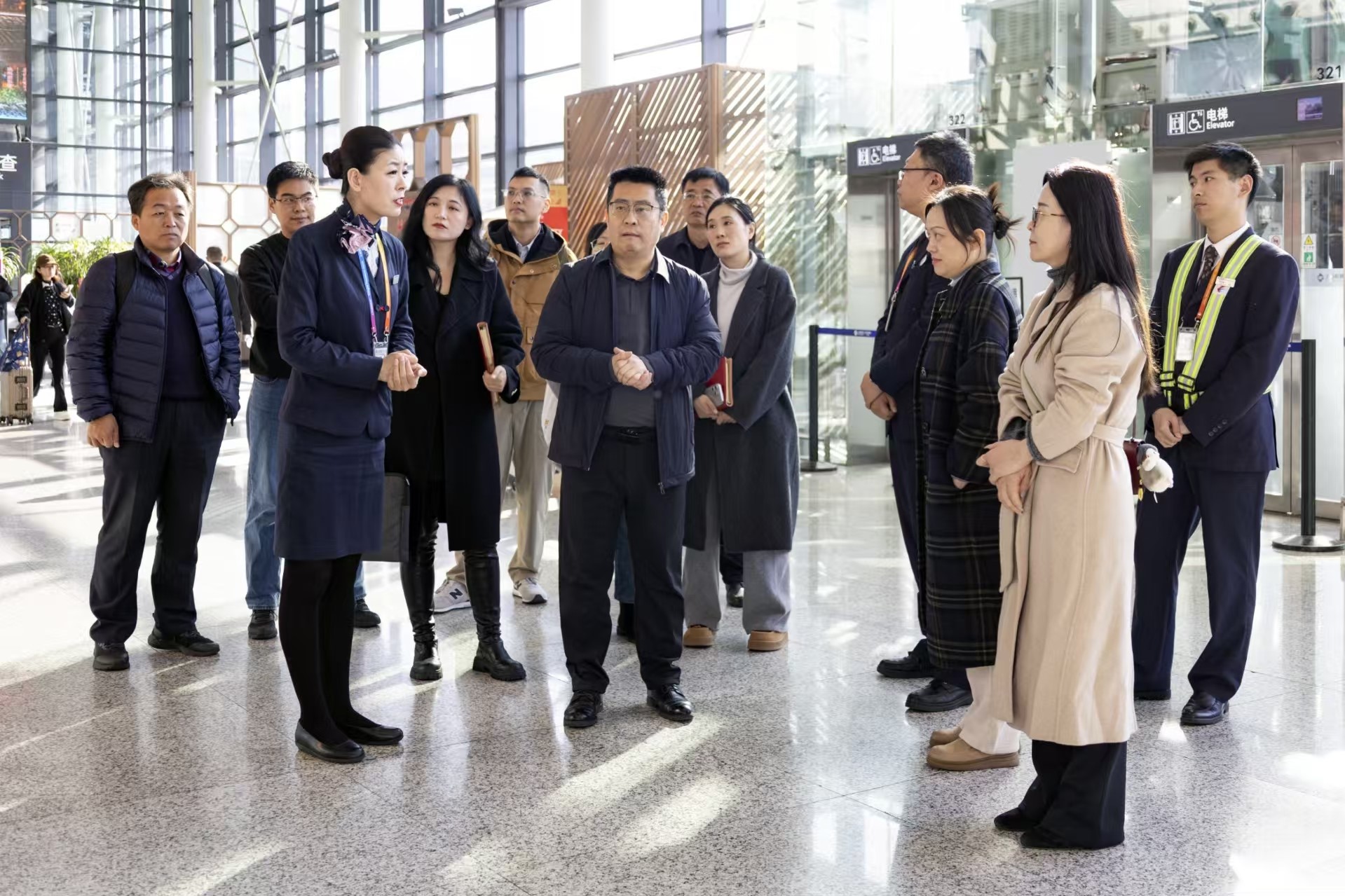 为深化学生的长周期驻企实践人才培养模式,强化校企协同育人质效,11月26日,教务处副处长唐永升带队赴航空服务艺术与管理专业校外实践基地——东方航空股份有限公司地服部开展实地调研及座谈交流。教务处、质量办、教学督导等相关科室人员、地服部企业专家及指导教师代表、航空运输学院(飞行学院)师生代表等共同参加交流。